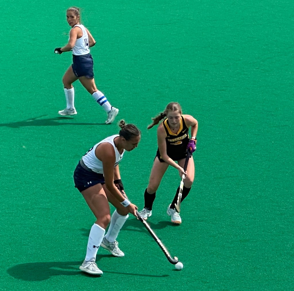 As the Hawk fans celebrated their victory, I had sober feelings about this one. Is Iowa relying entirely too much on van Aalsum, who had scored all four goals? But Coach Lisa knows a lot more about the game than I do, and perhaps she wants to establish the Zonnenberg-van Aalsum connection on PCs firmly before the Hawks face serious opposition. But what happens if she is injured? Kent State played the kind of match that I’d seen our National Team play all too often in the Pro League, able to get just close enough against a stronger team to fan a spark of hope for a victory, and then see their chances vanish just as quickly. Of course I was happy Iowa won but felt little cause to celebrate and little enthusiasm for our match Sunday, when Iowa would face only Lilliputian opposition from Queens University in Charlotte.