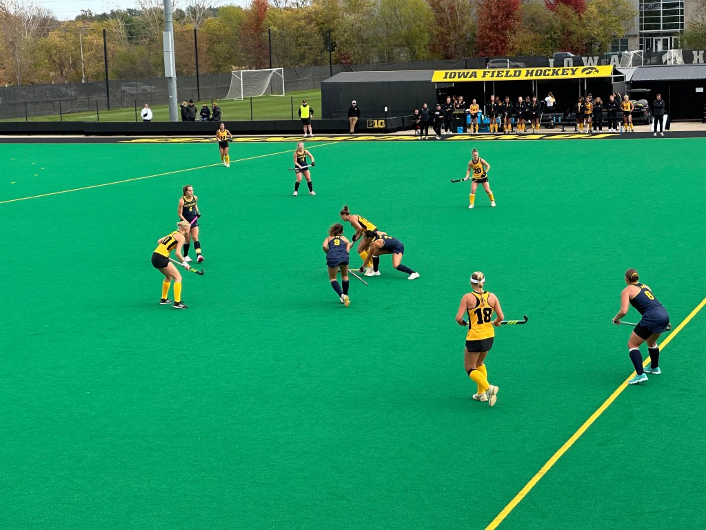 The win over Rutgers showed that the Hawks would be competitive in the Big Ten and their easy victory over Michigan State on Friday the 24th October made their eligibility for the Tournament highly likely. It was already clear that the Northwestern Wildcats would emerge as the conference champions, that Michigan State would play their accustomed role as doormat, and that Penn State would likely miss the tournament despite their overtime at home victory against Iowa. For Iowa, playing Michigan is always intense. And the Wolverines still had their forward Abby Tamer, whom I’d seen perform so brilliantly in London on our National Team in the Pro League, before we got relegated. The Wolverines had a new coach, Christy Gannon-Fisher, longtime assistant to Marcia Pankratz, ex-Hawkeye herself and my coach besides our own Coach Lisa. It was good to see a pony-tailed blonde still patrolling the sideline, albeit rather younger.